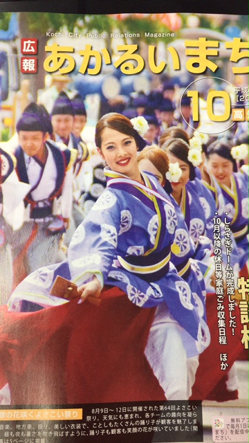 2017.09.23お知らせ 広報 あかるいまち 表紙にTACYON 高知市の広報誌「あかるいまち」10月号の表紙に TACYON(タキオン)の写真が採用されることになりました。 高知市に在住のみなさまにはもうすぐお手元に届くと 思われますので楽しみにしていてください。